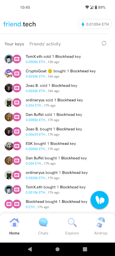 When Blockhead signed up to the platform just weeks after its launch last year, our keys were targeted by what are presumably bots on Friend.tech. Peaking at 0.00625 ETH, Blockhead keys are now worth nothing.