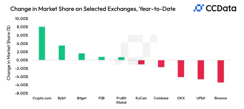Meanwhile, Binance's crypto trading volume has hit its lowest in four years. According to a CC Data report, Binance handled only 36.6% of overall spot and derivatives trading volume on centralized exchanges. The figure is the lowest since September 2020.