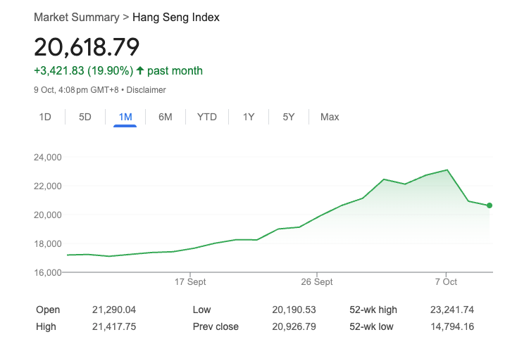 On September 30, the last trading day before China's market closed for the vacation, the Shanghai Composite Index surged 21% from September 23 to 30. Upon returning to trade on Monday, the index surged by an additional 8%.