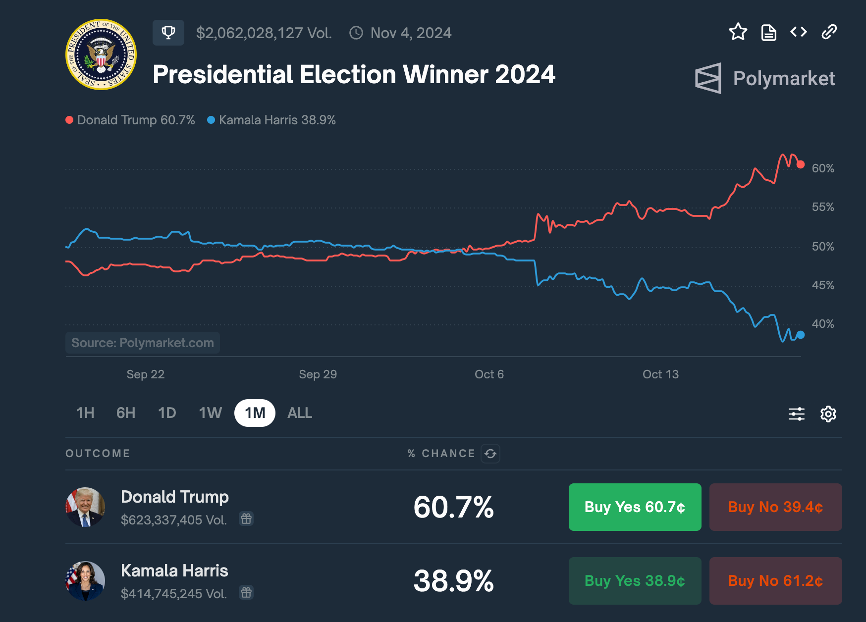 Now comfortably in the lead on Polymarket, Trump is making the last push to cement his support from the crypto industry, generating as much hype in the sector as possible, proudly declaring, "Crypto is the future," during the launch of WLFI.