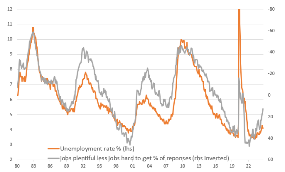 Deteriorating perceptions of the jobs market tend to lead to moves in the unemployment rate.