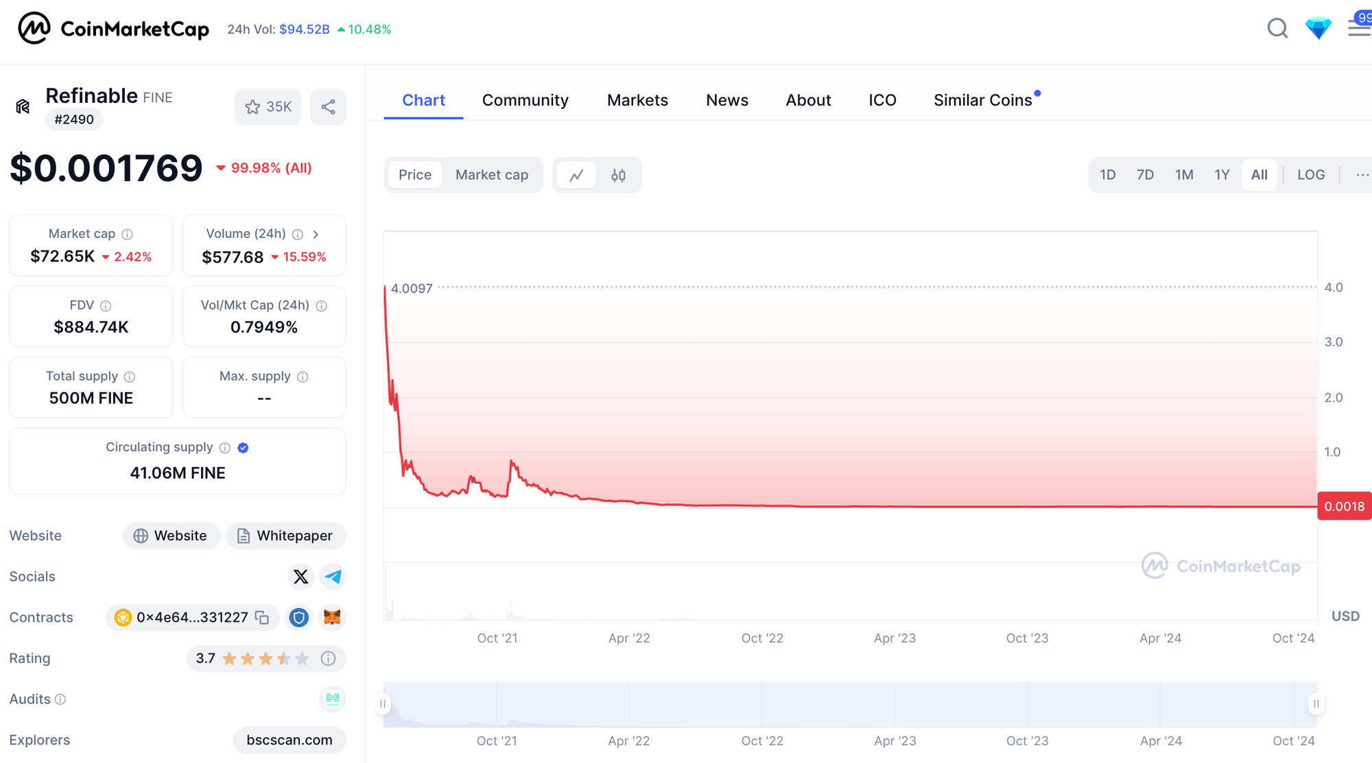 On April 27 and May 23, 2021, MrBeast's wallet (0x9e67D018488aD636B538e4158E9e7577F2ECac12) received a total of 267,917 FINE tokens, ($610,000 at the time). On-chain data indicates MrBeast sold these holdings post-launch, netting nearly $193,926 in profit. Reaching an all-time high price of $4, FINE soon plunged to under $0.002.