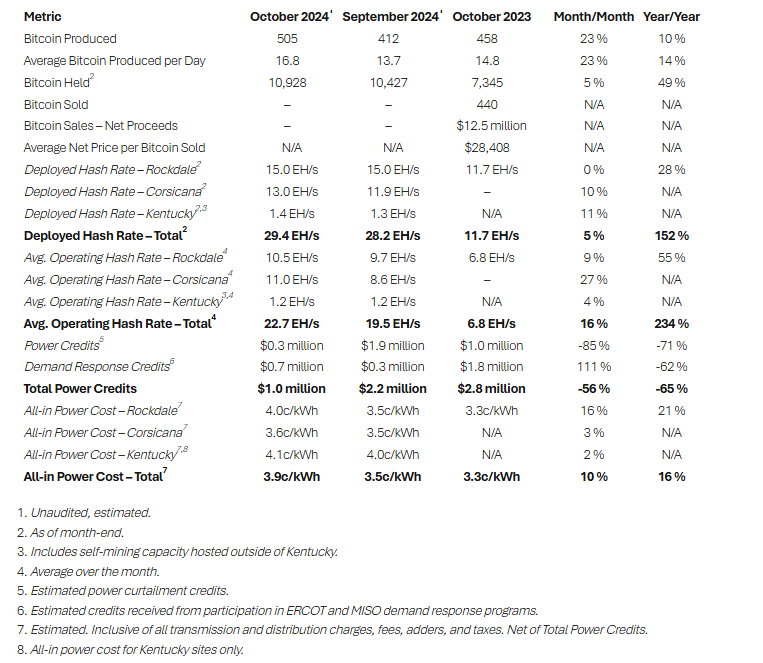 “During the month of October, our deployed hash rate increased to 29.4 EH/s, driven by new deployments of latest generation MicroBT miners at the Corsicana Facility," explained Jason Les, CEO of Riot. "We are pleased with the positive operational momentum underway and look forward to continuing this progress.”