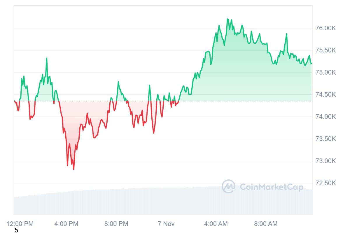 Bitcoin’s immediate response to Trump’s win was nothing short of spectacular. The world’s largest cryptocurrency surged past $76,000, marking a new all-time high.