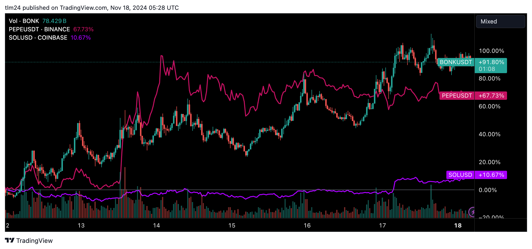 For now, tokens like BONK and PEPE are setting the pace for a retail resurgence that shows no signs of slowing.
