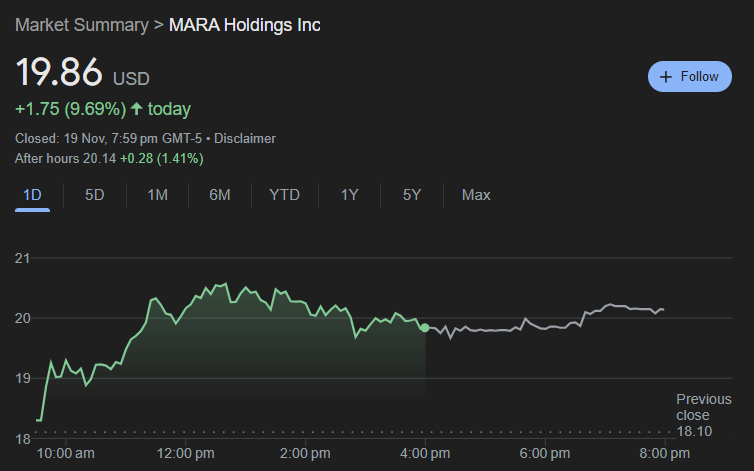 In response to Marathon's plans, its stock price jumped over 9.6% yesterday. Holders of Marathon’s convertible notes will have the option to ask for cash repayment starting 1 December 2027. The notes, which mature in 2030, offer investors the flexibility to convert them into cash, MARA stock, or a combination of both.