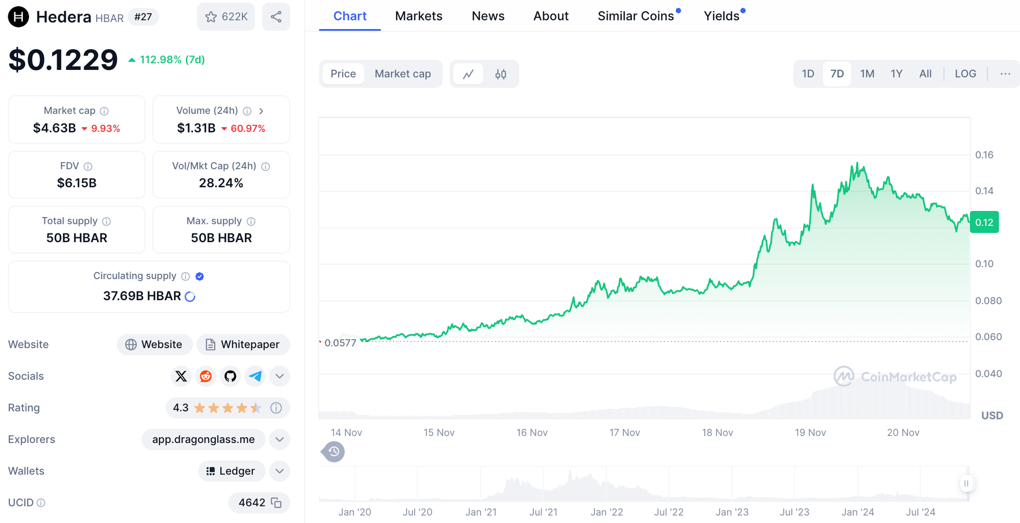 The rumour alone, shared by a Fox Business journalist citing anonymous sources, sent Hedera’s HBAR token surging 29% within a day.