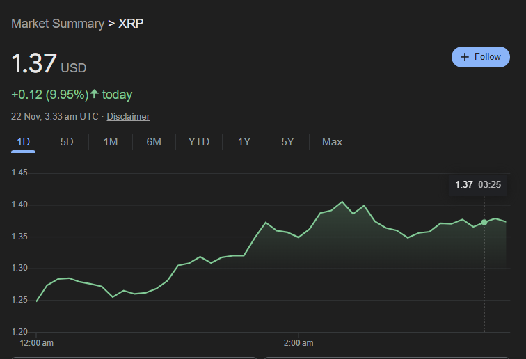 XRP, rose another 10% over the past 24 hours, after already rising 86% throughout the week prior.