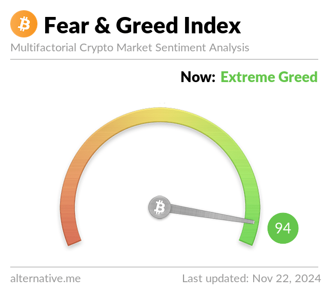Risk appetites have intensified from last week's "Extreme Greed" at 80 to 94, also "Extreme Greed."