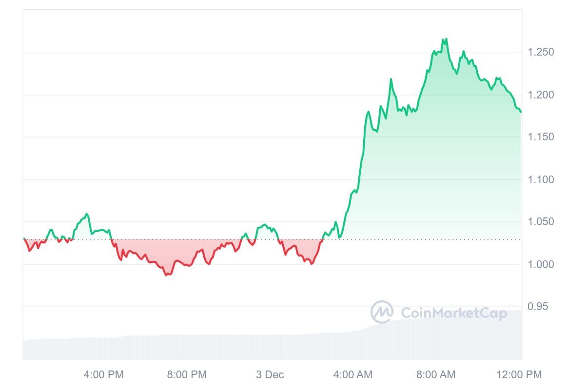 The excitement surrounding Sonic Chain has already influenced Fantom’s native token, $FTM. Following the Genesis Block announcement, $FTM saw a surge of over 15% in value, outperforming broader market trends to climb to $1.256, before settling around $1.18 currently.