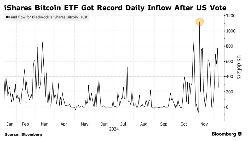 The ETF story has been pivotal in Bitcoin's recent rally. A record $1 trillion has been invested in U.S. ETFs this year, according to CNBC, with crypto ETFs taking a significant slice of the pie.