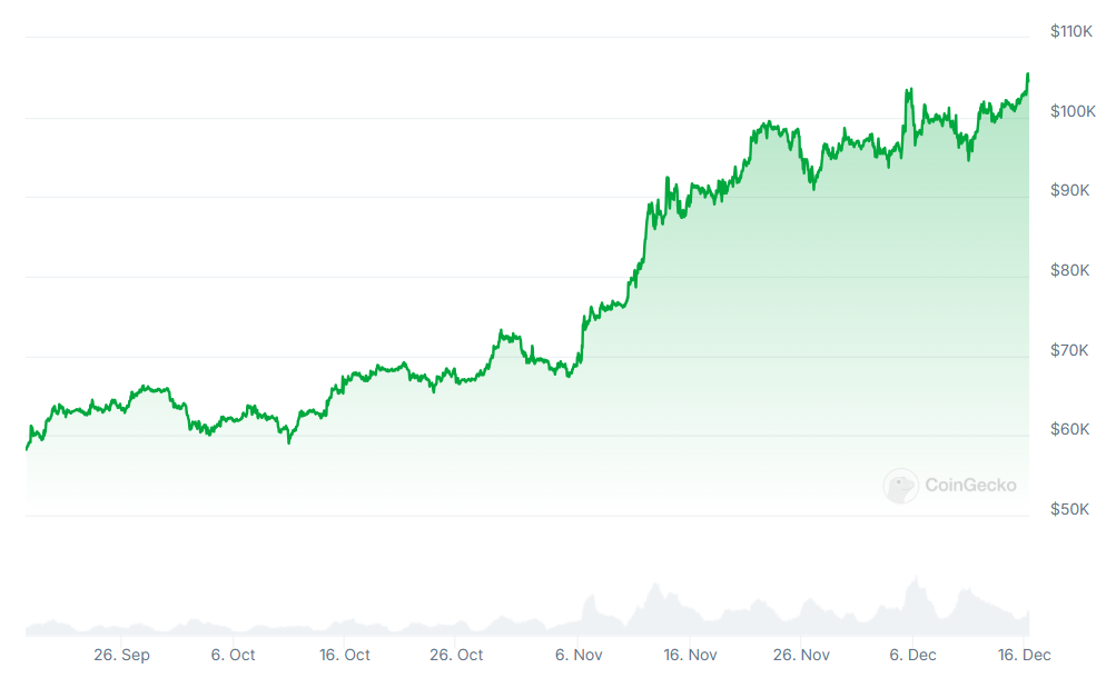 At one time on Monday in Asia, the biggest token jumped over 3% to a record $106,493, surpassing its prior record on December 5.