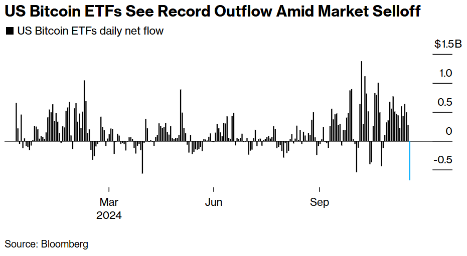 Bloomberg data showed that a group of US Bitcoin ETFs posted a record outflow of $680 million on Thursday, ending a 15-day sequence of consecutive inflows. This highlights the change in mood.