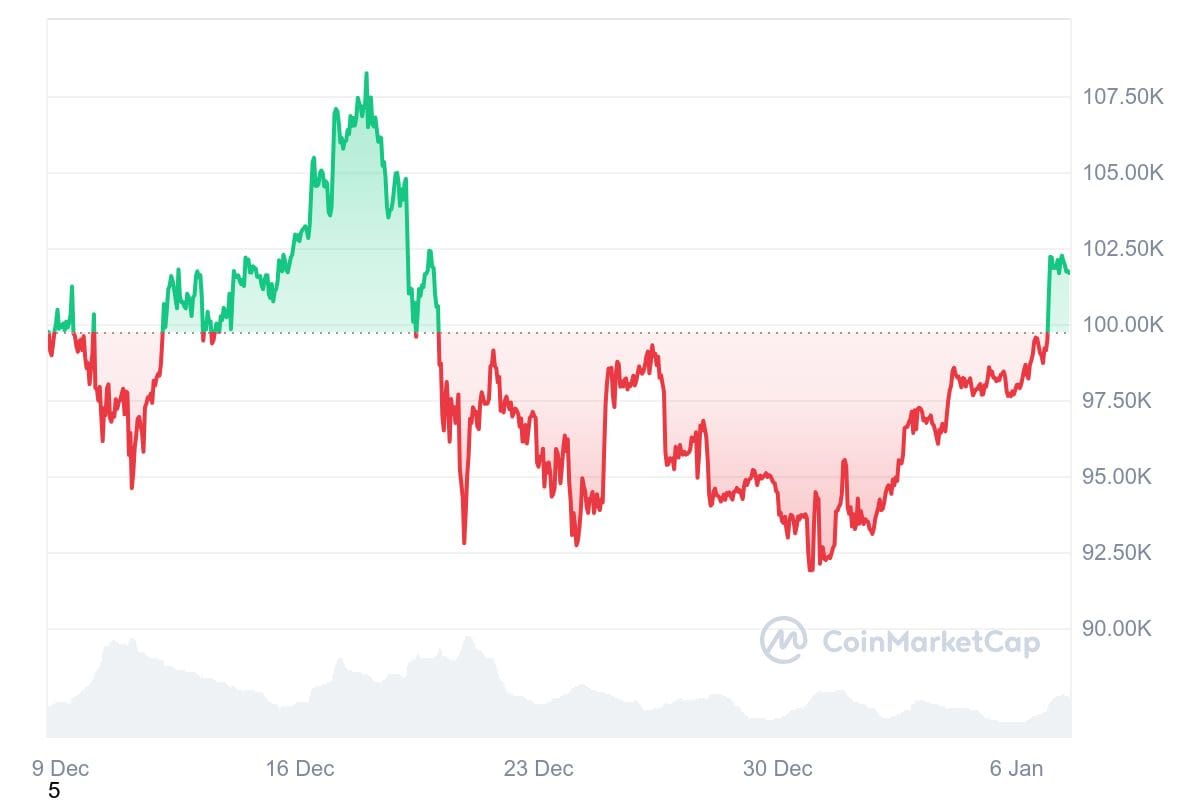 As of publication time, Bitcoin was trading at around $101,700, or around 10% higher than the week before and a few grand shy of its all-time-high of $108,250, set in mid-December.