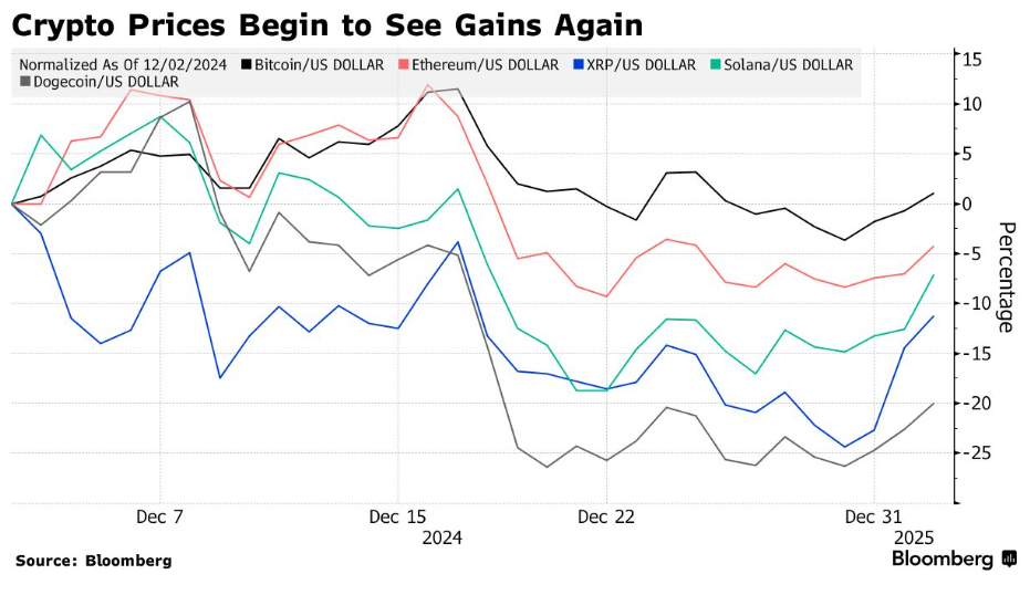 Crypto-adjacent stocks, too, gained in the new year. Among the companies, Coinbase gained 5.6%, MicroStrategy increased 7.3%, and Marathon Holdings rose 8%.