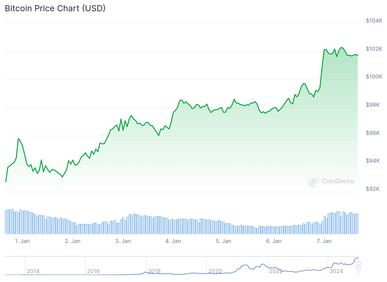 Bitcoin is back above the $100,000 mark after falling below $92,000 at one point during the holiday trading.