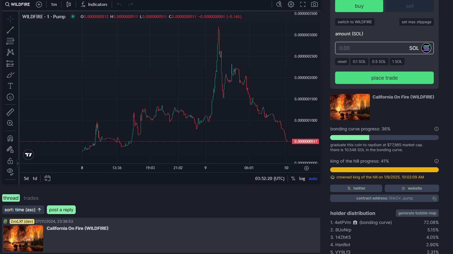 Meanwhile, over on Solana memecoin generator website Pump.fun, a slew of wildfire-themed memecoins have been generated.