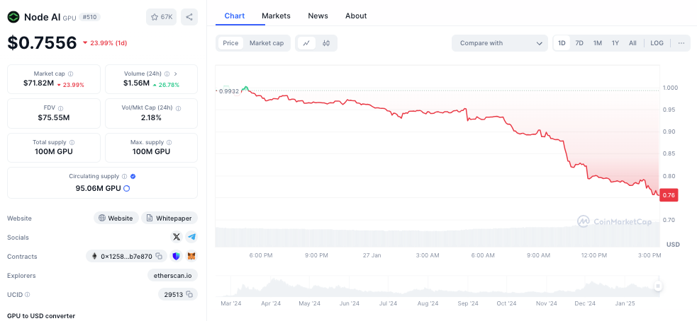 Node AI has cratered more than 23% while Aethir has slipped over 11%. Meanwhile, Bitcoin has dropped slightly over 6% to the $99K range.