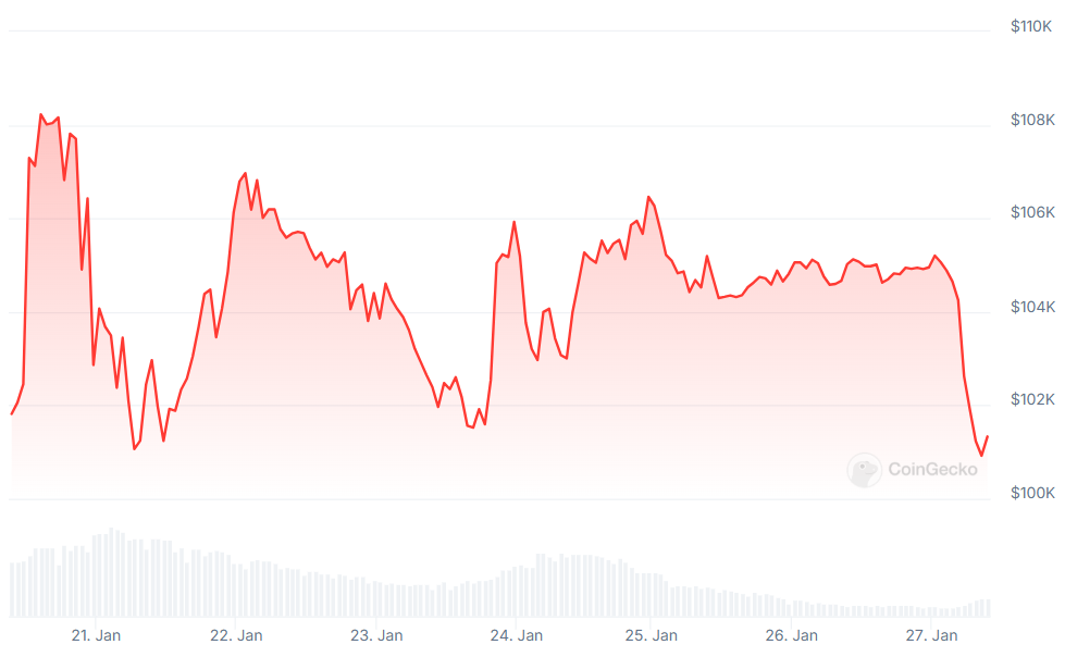 First, the OG token hit a record high on the day of Trump's inauguration of over $109,000 before slumping to stay barely above $101,000 in a week.