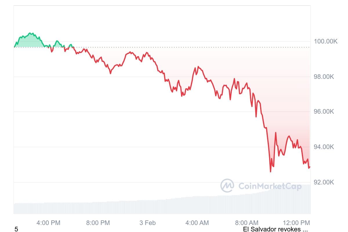 Cryptocurrencies, often heralded as “digital gold” or safe-haven assets during times of economic uncertainty, paradoxically experienced some of the steepest declines. Bitcoin, the largest cryptocurrency by market capitalization, has fallen by almost 7% within 24 hours, currently trading below $93,000 after briefly dipping to $91,000.