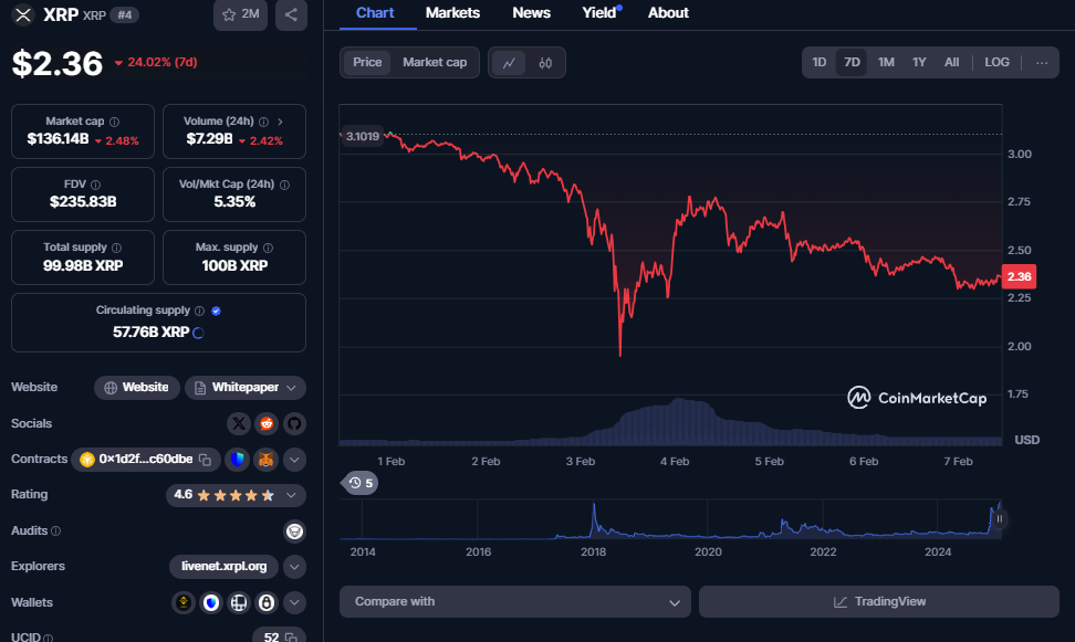 The filing comes as XRP faces a steep decline, falling 24% over the week, despite approaching its all-time high of almost $3.40 last month.
