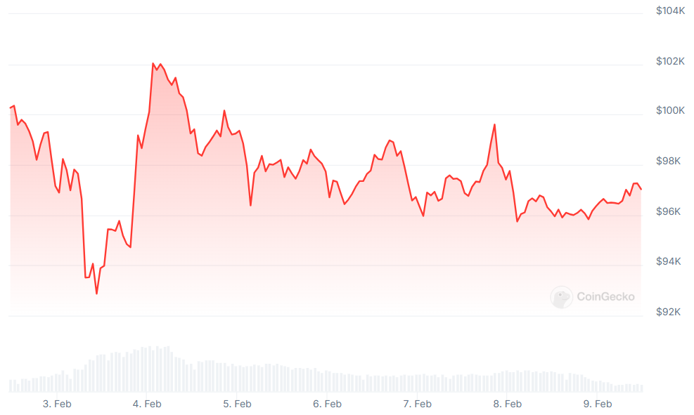 Bitcoin ended the week below $100,000 and see-sawed between small gains and big losses, with the OG token last changing hands at a touch over $97,100.