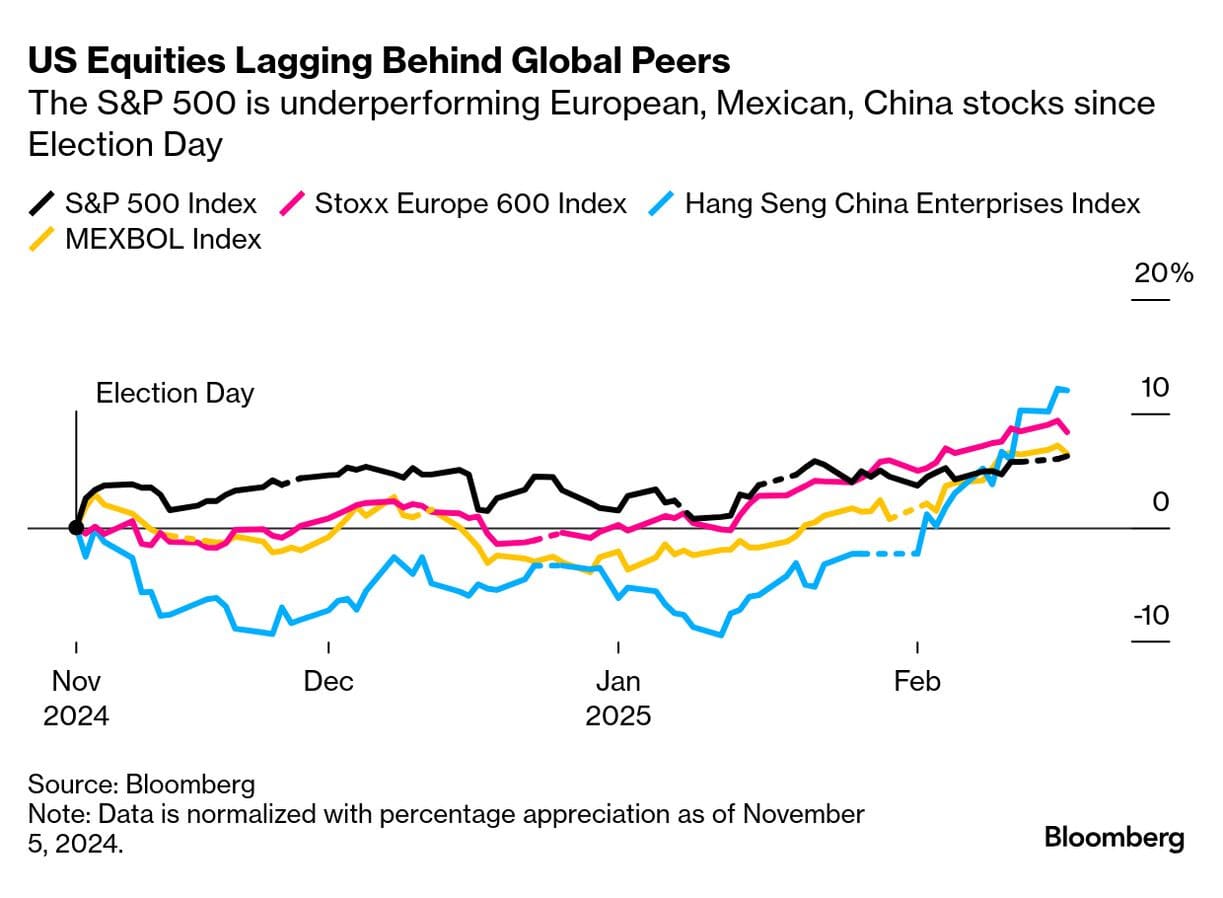 Cryptos have fallen off track from their peaks as the dwindling rally in Wall Street stocks has lagged European, Chinese, and Mexican indices, and the so-called Trump Trade for the dollar has become anaemic.