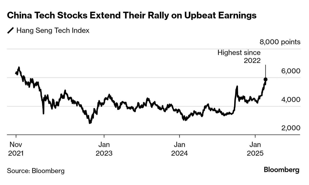 The Hang Seng Tech Index—which tracks Chinese equities listed on the Hong Kong Stock Exchange—rose on Friday by 6.5% to its highest level since the beginning of 2022.