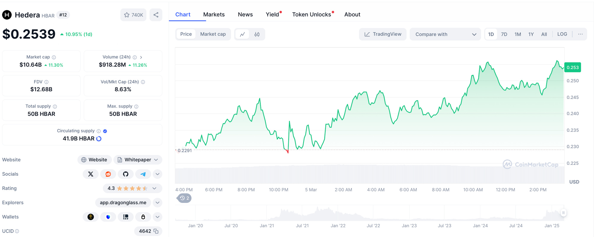 Since ETF speculation took off on February 25, HBAR has surged by 28%, reflecting increased investor confidence and growing interest in the token. HBAR experienced an 11% surge in a single day following the Grayscale filing.