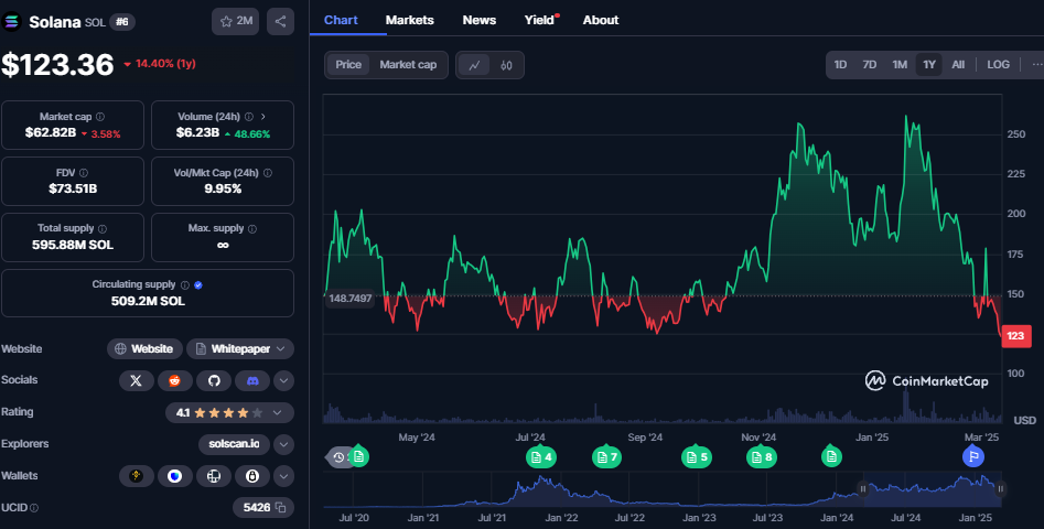 Solana's token, SOL, has also taken a significant hit. Since reaching an all-time high of $295 on January 19, SOL has tumbled 60%, now sitting at around $120.