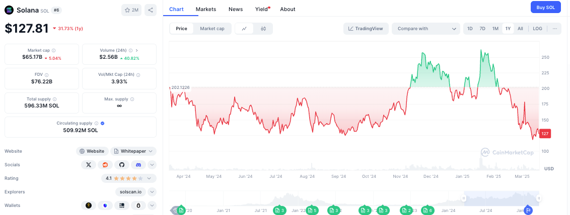 Solana's price has suffered too. Although considerably higher than its $10 price tag following the collapse of FTX, Solana is trading at around $127, which is 50% less than its January highs of $261.