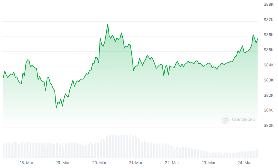 The OG token gained nearly 2% to trade close to $86,000 on Monday after falling about 4.3% on Sunday in a broad crypto selloff.
