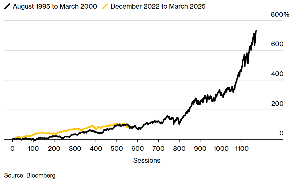 Those echoes are visible in the current market trend. Artificial intelligence (AI) is the new technology this time around.
