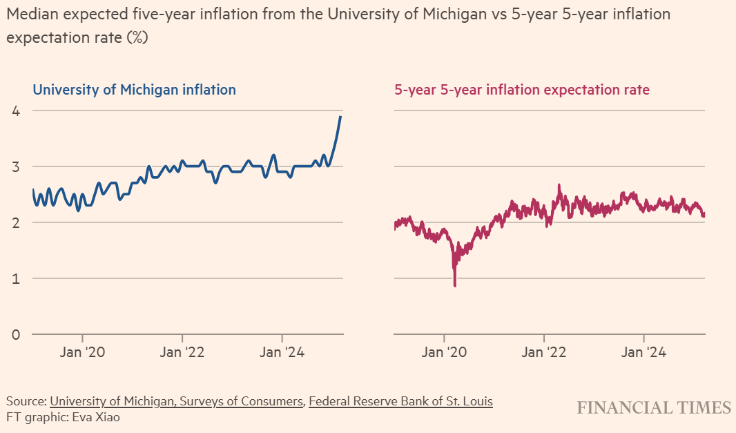 On the other hand, respondents to the UMich survey projected long-term inflation of 3.9%.