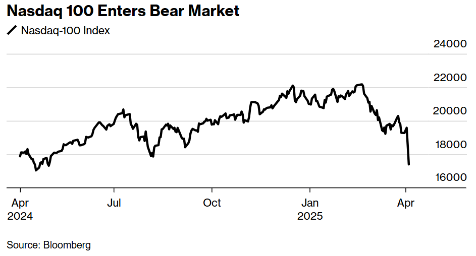 Following a 6.1% decline, the Nasdaq 100 entered a bear market.