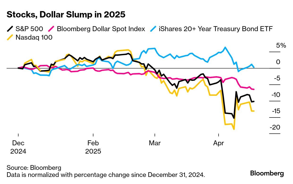 That is another reason for investors to sell American assets, as the dollar gauge fell to its lowest level since January 2024.