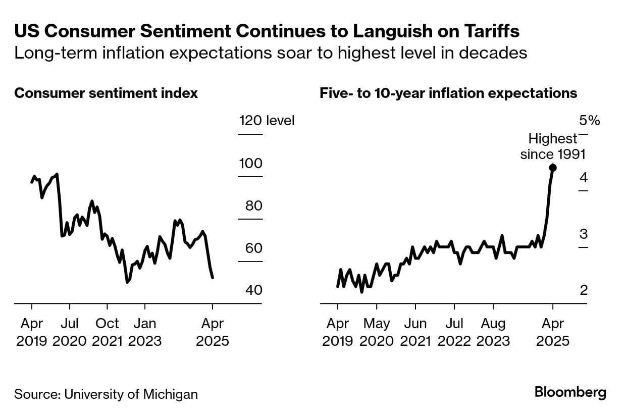 On the economic front, Trump's constituents are unprecedentedly concerned. The latest data indicates a significant decline in consumer sentiment in the US, reaching one of the lowest levels recorded. Additionally, long-term inflation expectations have surged to their highest point since 1991, driven by concerns regarding the domestic impacts of the tariffs implemented.
