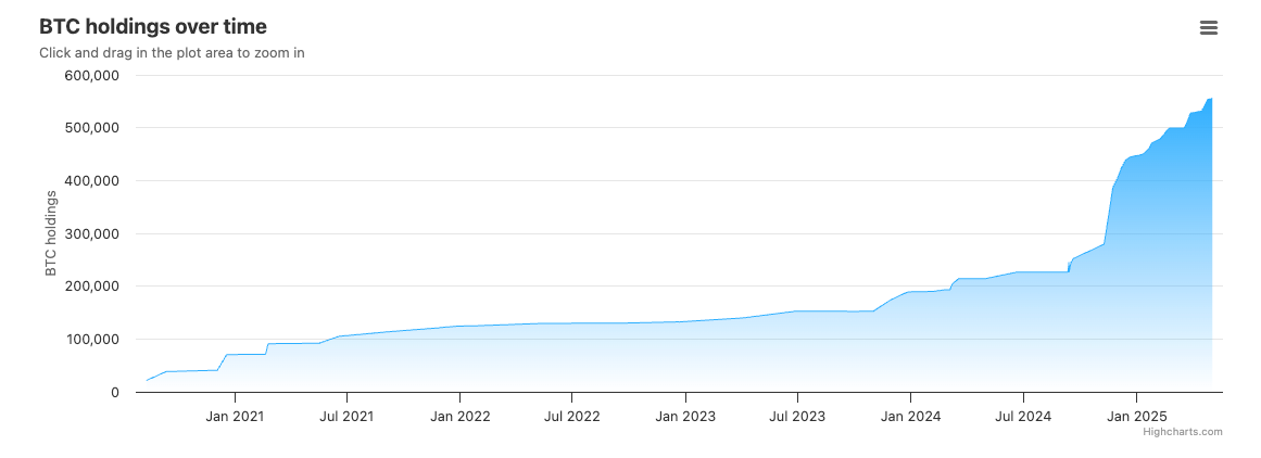 The dot-com software giant, which has since become a leveraged Bitcoin proxy, opted to apply the approved accounting change in the March quarter of 2023. Strategy currently holds 555,450 BTC, or about $53 billion worth of Bitcoin assets, following its most recent purchase announced on Monday.