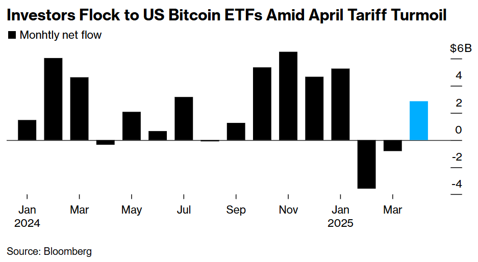 In response to the tariffs, Bitcoin and other risk assets experienced a decline, mirroring the significant downturn in US stocks. Nevertheless, investors flocked to the cryptocurrency amid escalating policy concerns and rising long-term Treasury yields, experiencing a surge in value.