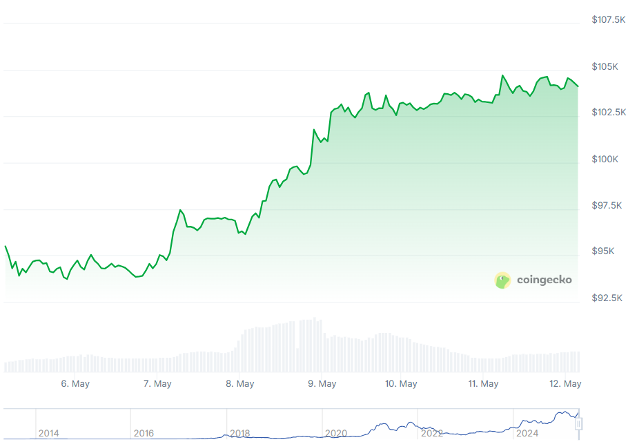 Bitcoin wasn't too far behind. The OG token rose 1.7% to $104,336, which was fueled by improved confidence in the digital asset market after the US and UK announced a new trade agreement.