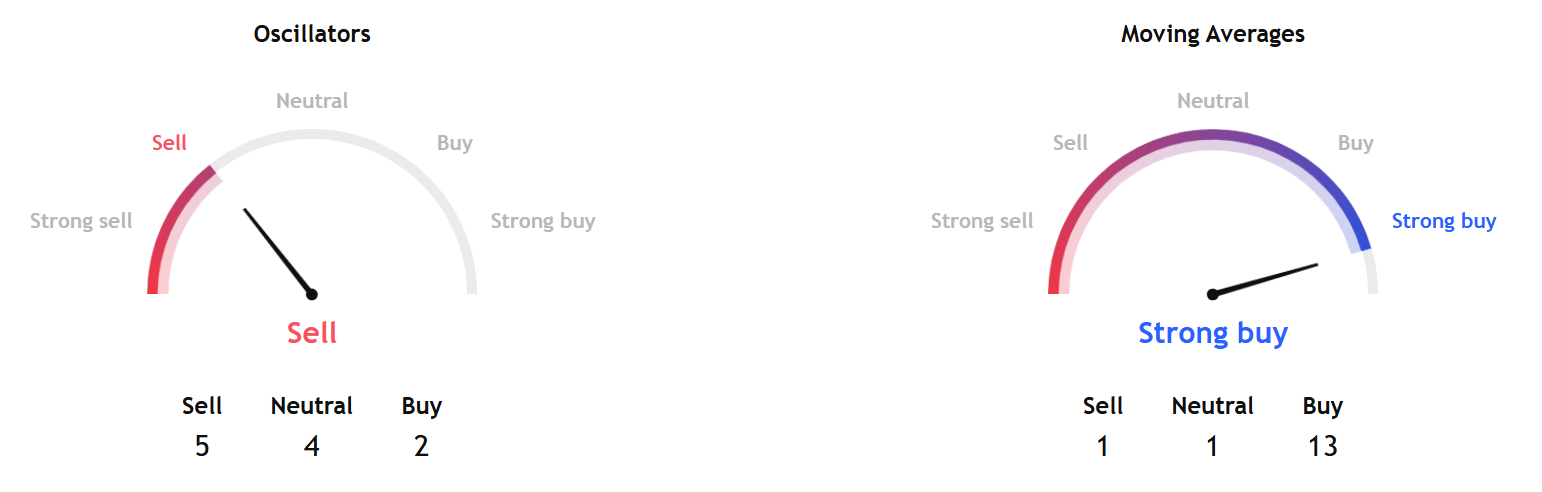 While oscillators show a sell signal, moving averages overwhelmingly point to a strong buy.