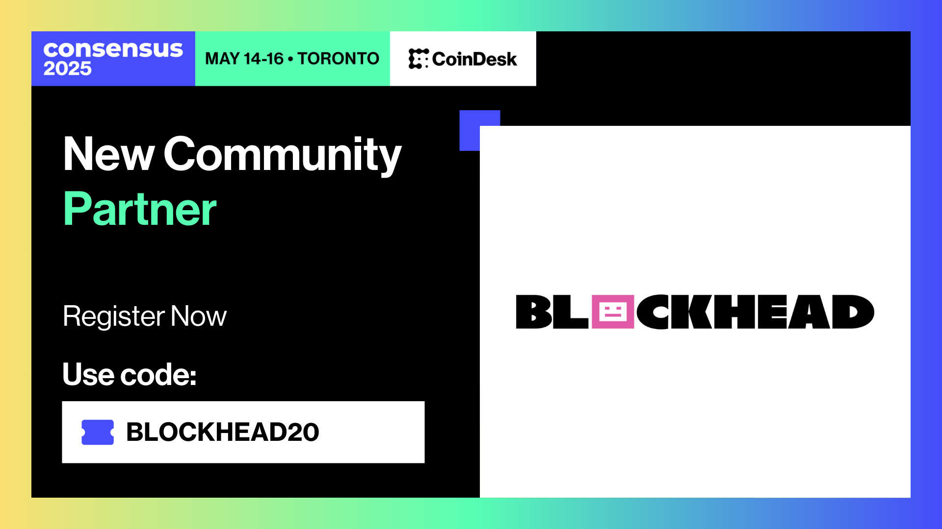 We're a media partner for Consensus 2025, held in Toronto, Canada on 14-16 May. Coinbase, BlackRock, Google & the White House will be there – will you? Use the code BLOCKHEAD20 for 20% off tickets!