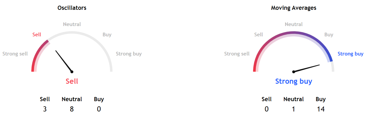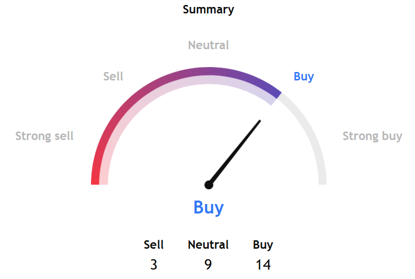TradingView's technical analysis indicates a strong buy signal, supported by the moving averages.
