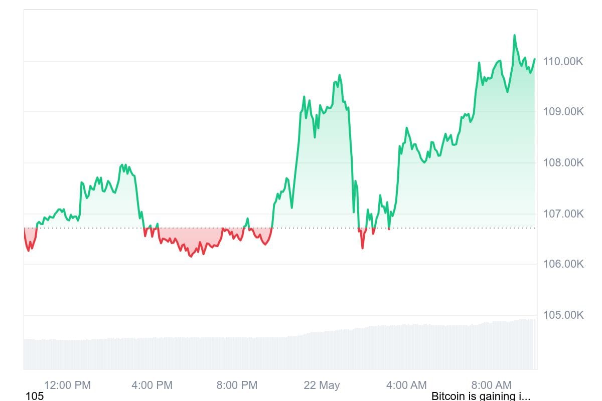 Bitcoin has reached a new all-time high, surging past the $110,000 mark for the first time ever. As of press time, the world’s largest cryptocurrency was trading at $110,032.39, up 3.46% in the past 24 hours, capping off a remarkable rally in May.