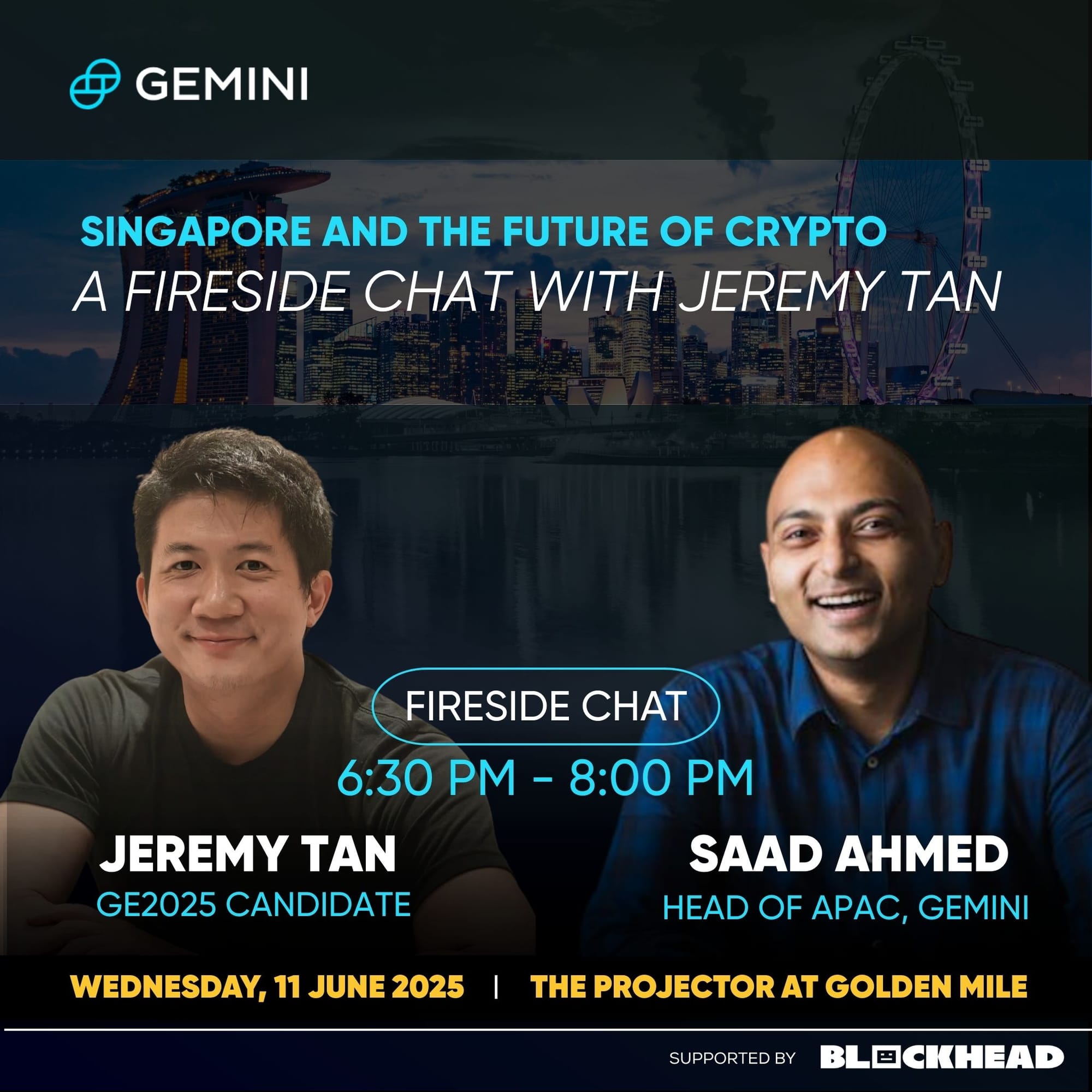 Join us for a compelling fireside chat on 11 June with Jeremy Tan, entrepreneur and independent GE2025 candidate, as he sits down with Saad Ahmed, Head of APAC at Gemini, to explore what Bitcoin really is, why it matters, and how it could help shape the future of Singapore — and its people.