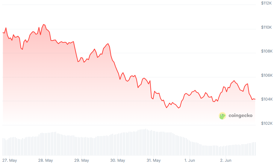 Last month, the token surged to a new all-time high of over $111,000 before paring back gains to trade around $104,000 on Monday. The tapering off in cryptos coincided with a pullback in risk assets, including stocks on US President Donald Trump's trade war uncertainty.