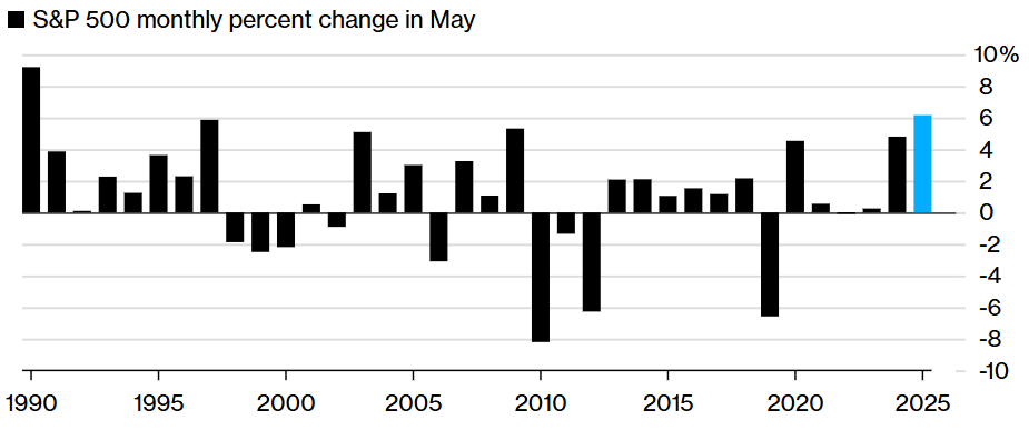 The S&P 500 surged 6% to mark its best May since 1990 and recorded its best month in over a year and a half. The index is about 4% from its all-time high and tells a telling story despite Trump's headlines almost every other day.