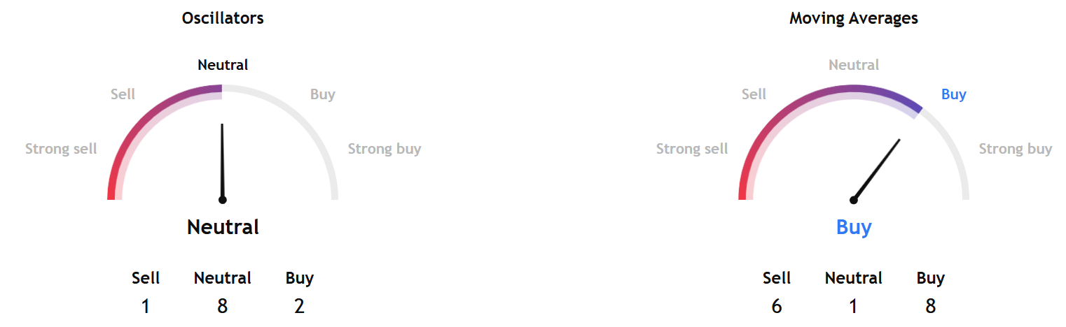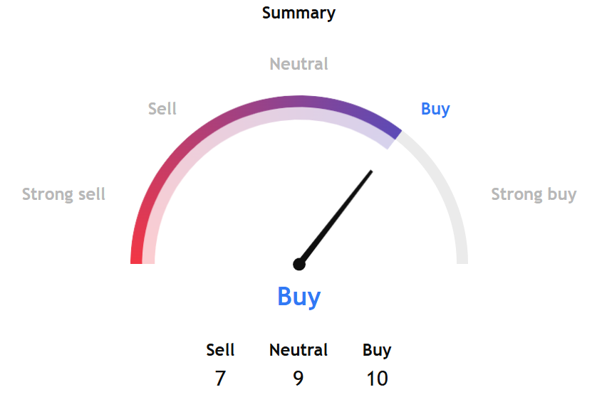 While TradingView's technical analysis charts point to a buy signal, the indicators pointing to sell increased compared to last week.