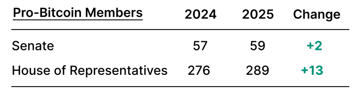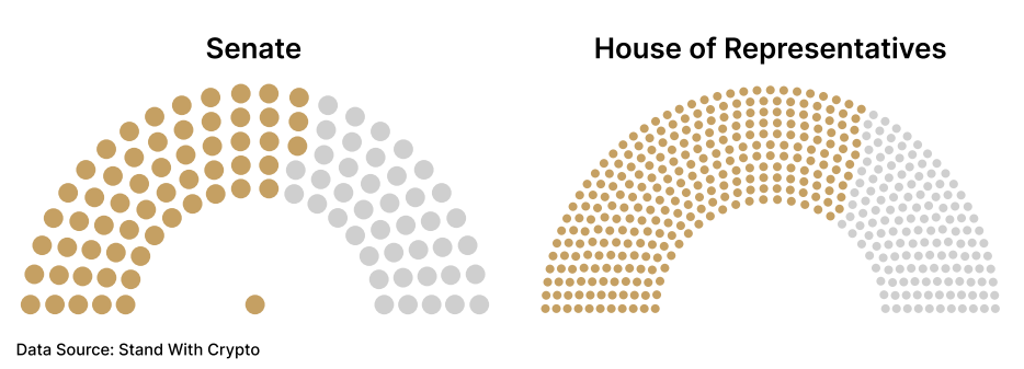 The advocacy group Stand with Crypto reports that after last November's election, most senators in the US Congress support crypto or Bitcoin.