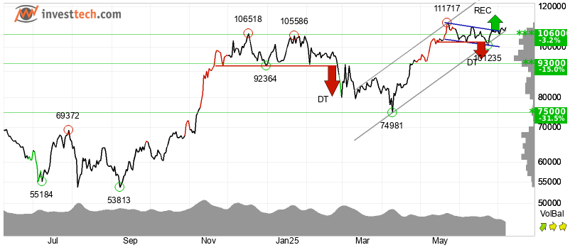 At $106,000, the cryptocurrency broke out of its barrier level. This data points to an additional increase.